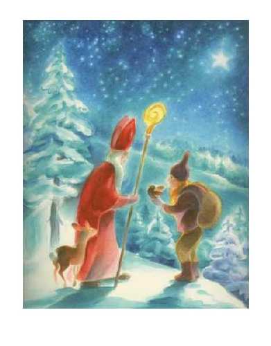 Y en un día como hoy, 6 de diciembre, llega Nikolaus a repartir regalos a los niños buenos. Hoy es el Papá Noel de los austríacos. La noche del 6 de diciembre (día de San Nicolás, en honor al día en que murió dicho santo en el 326 d.C.), Sankt Nikolaus va de casa en casa repartiendo chocolates, frutos secos y naranjas a los niños que se han portado bien durante el año. Es una tradición tan milenaria como la de Krampus. Se cree que data de mediados del siglo XVII y se basa en un hombre vestido de obispo (como podéis ver en la imagen), con una larga barba blanca y un cetro que premia a los niños por su buen comportamiento. Una leyenda muy parecida a la de Santa Claus, Papá Noel, San Nicolás o como le queráis llamar. En realidad, la misma leyenda, sólo que celebrada el día de San Nicolás y a la manera ancestral, sin regalaran tantos jugetes, sino dulces y frutas.